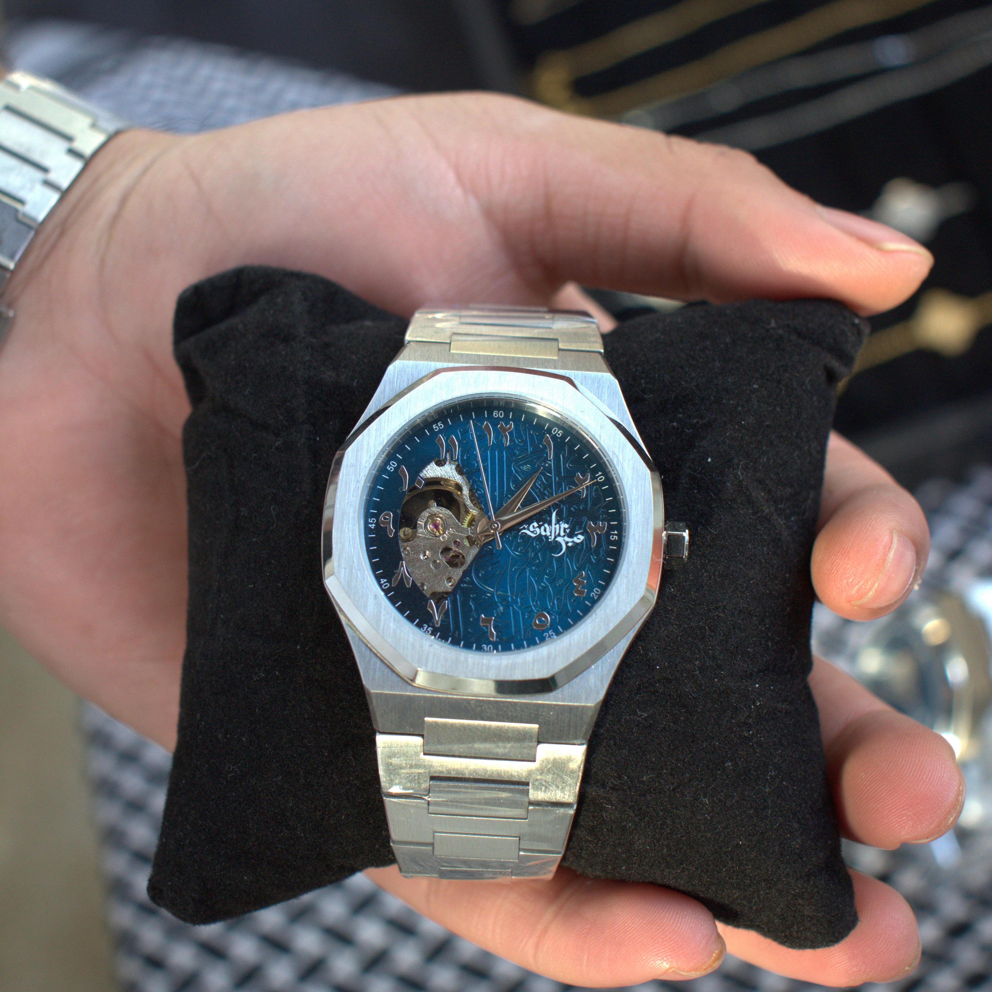 "From the Arabic calligraphy to the visible mechanical movement, to the heavy weight, this watch feels so nice on the wrist. A must add to your collection!"